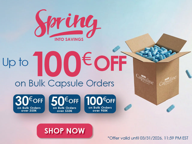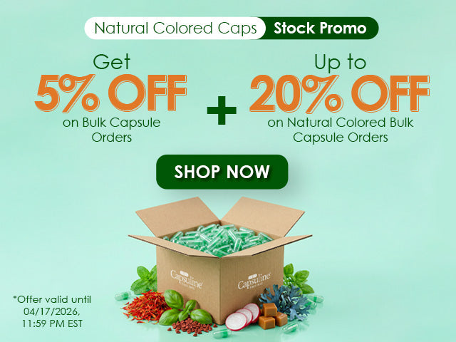 Capsuline K-CAPS® Vegetarian Capsules are produced with 100% plant-derived material (HPMC) and purified water. The HPMC is a wood pulp derived from the softwood tree species including Pine and Spruce.