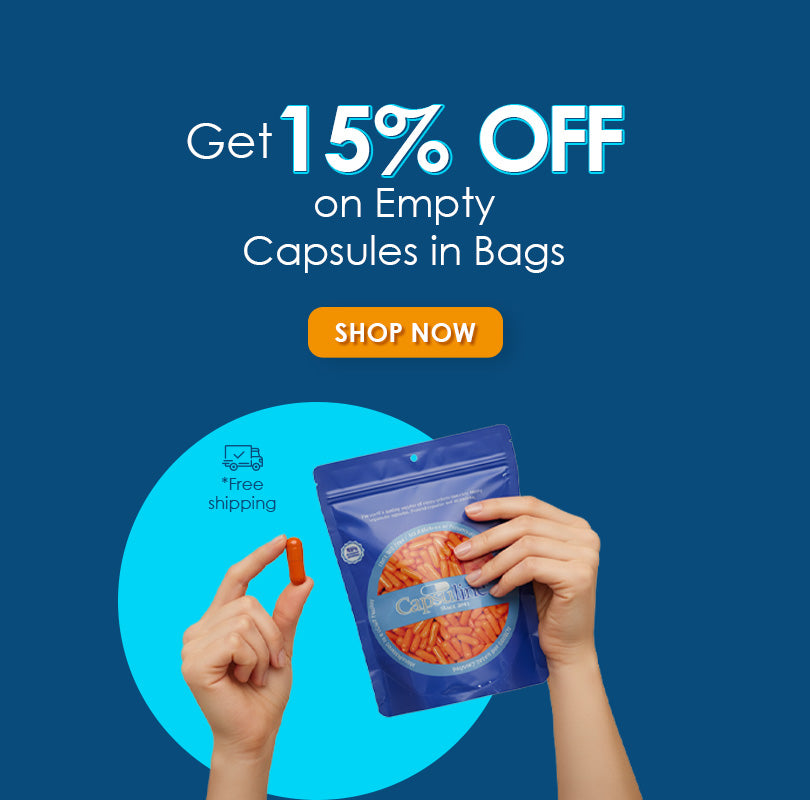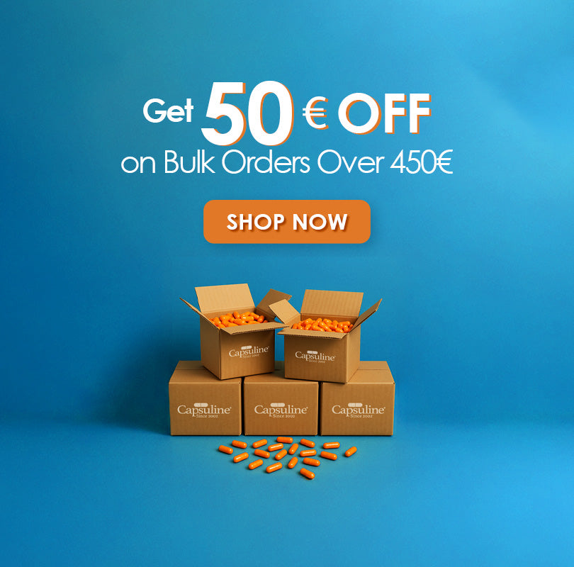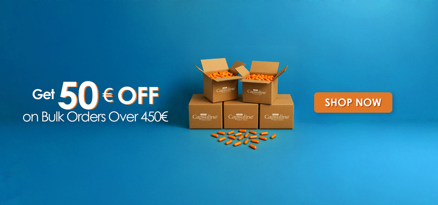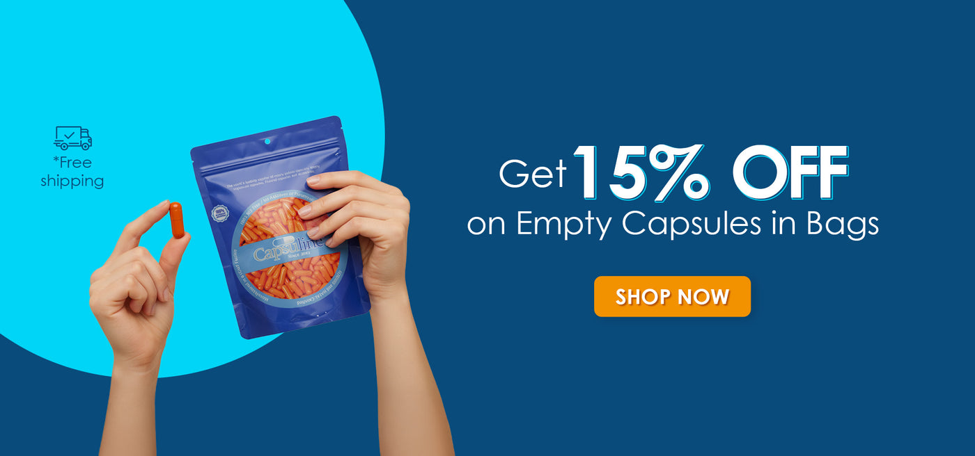 Empty vegetarian capsules, made out of HPMC, 100% plant-derived. All sizes available: 000, 00E, 00, 0E, 0, 1, 2, 3, and 4.